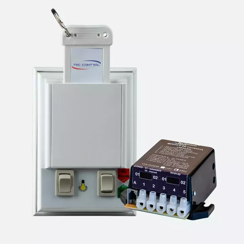 O economizador de energia para hotel TC101 CVM da Tec Control se diferencia por ativar um circuito elétrico apenas com um chaveiro magnético. O economizador de energia funciona quando reconhece a presença do chaveiro e aciona a energia elétrica para o hóspede.