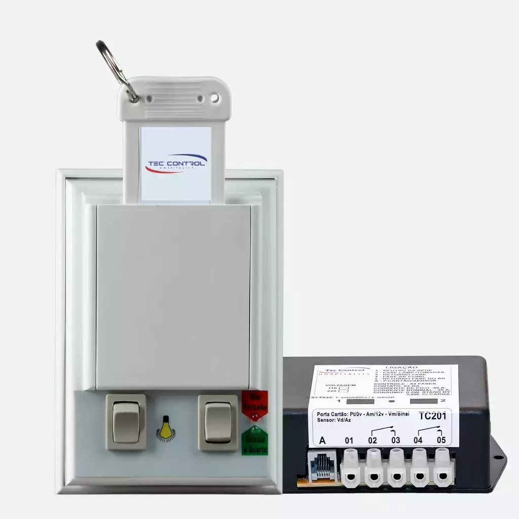 O economizador de energia para hotel TC201 CVM da Tec Control se diferencia por ativar um circuito elétrico apenas com um chaveiro magnético. O economizador de energia funciona quando reconhece a presença do chaveiro e aciona a energia elétrica para o hóspede.